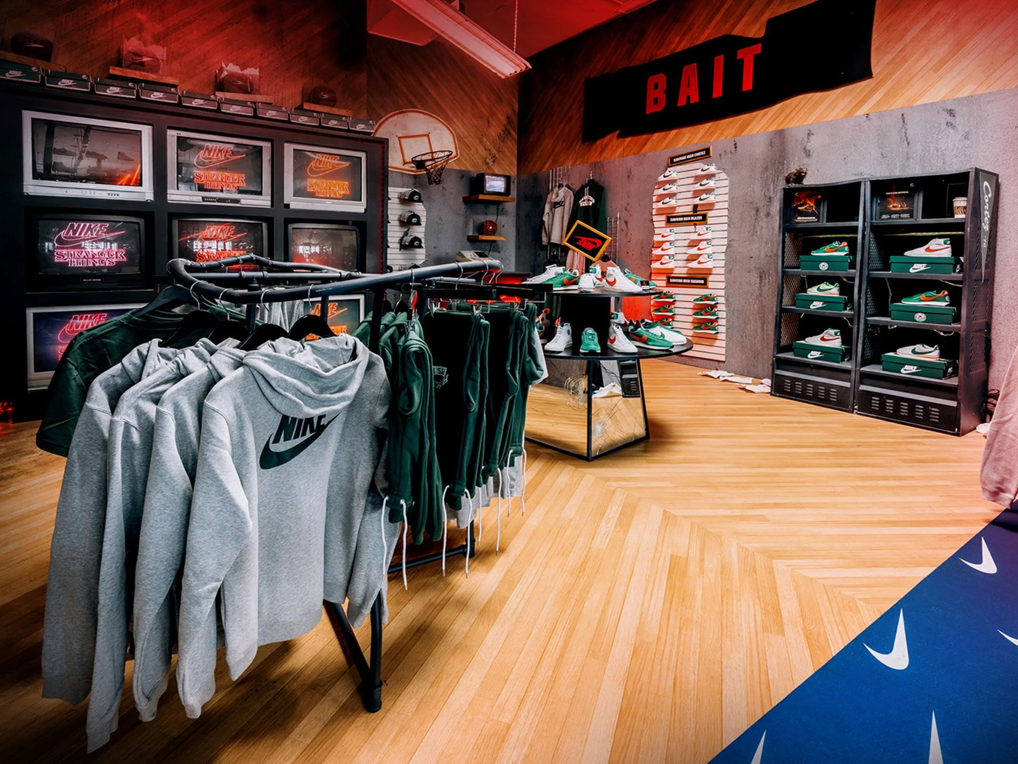 We transformed Bait’s Melrose location into a havoc stricken 1980’s Nike store. The store emulated how it would be depicted in the “upside down”.